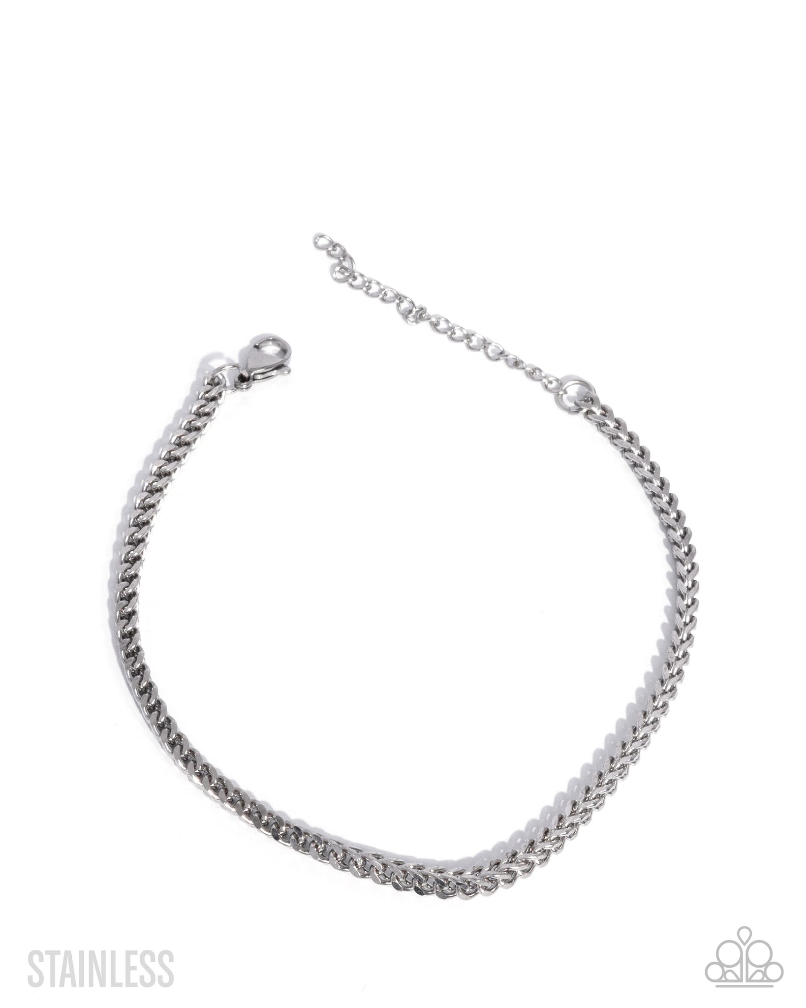 Featuring stainless steel, a silver curb and classic chain streams and twist along the wrist for a characteristically confident look. Features an adjustable clasp closure.